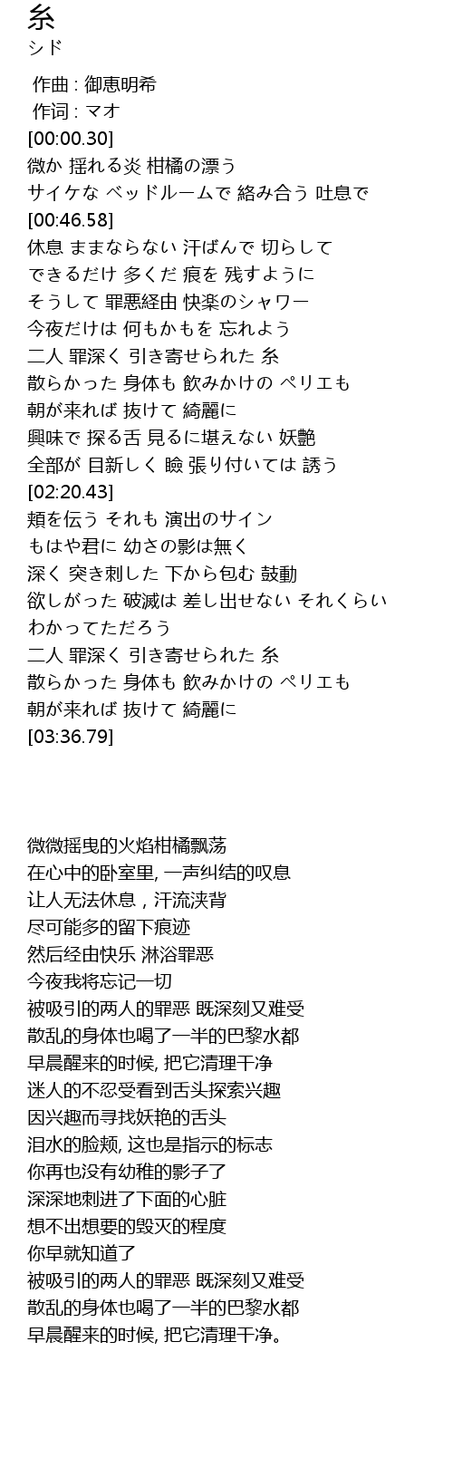 | [01:28.16] | 二人 罪深く 引き寄せられた 糸 |