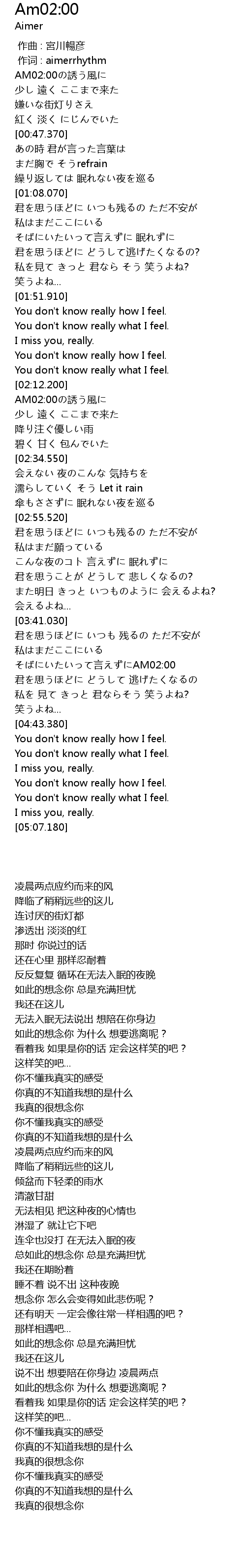 | [04:14.170] | そばにいたいって言えずにAM02:00 |