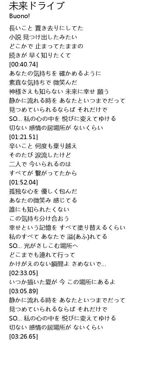 | [00:50.86] | 神様さえも知らない 未来に幸せ 願う |