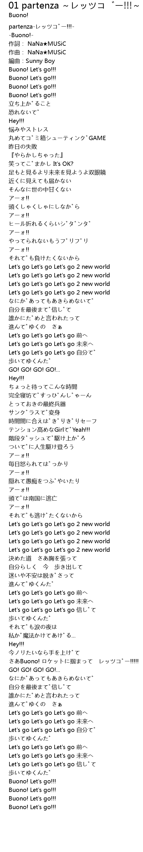 | [00:01.492] | partenza-レッツゴー!!!- |