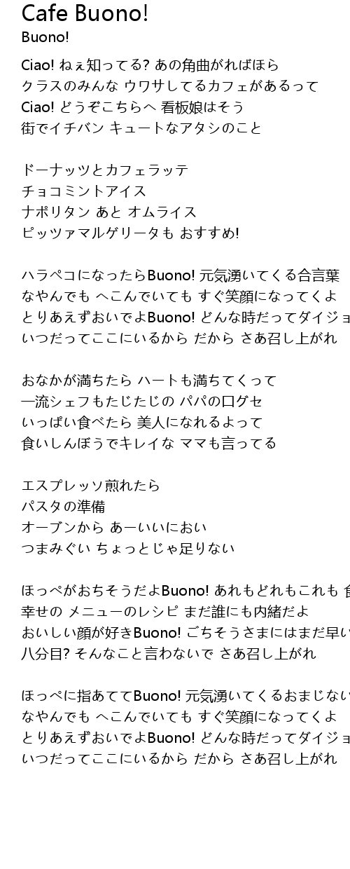 | ハラペコになったらBuono! 元気湧いてくる合言葉 | |