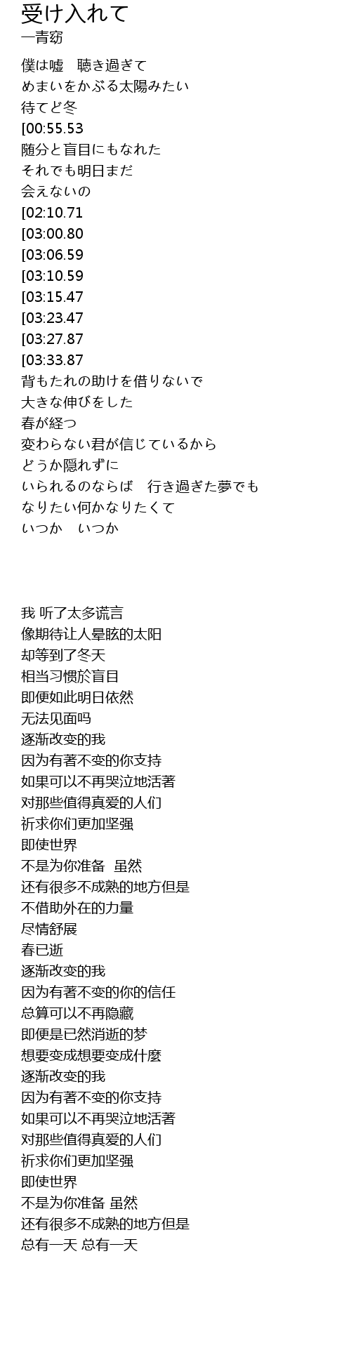 | [01:34.59][03:33.87] | 足りない僕だけど |