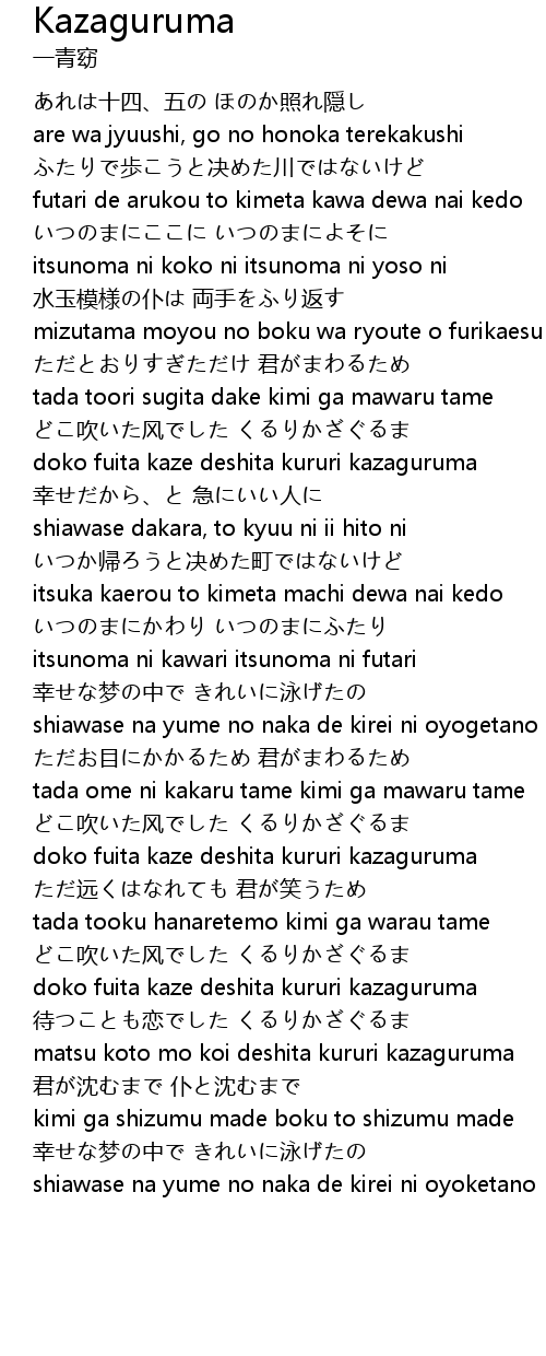 | matsu koto mo koi deshita kururi kazaguruma | |