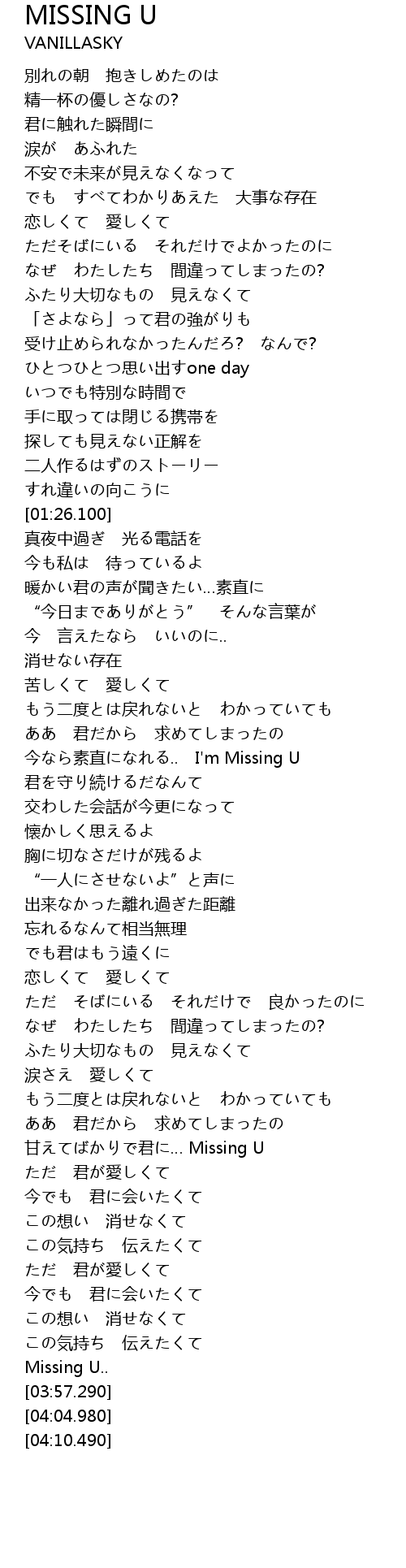 | [03:53.520] | Missing U |