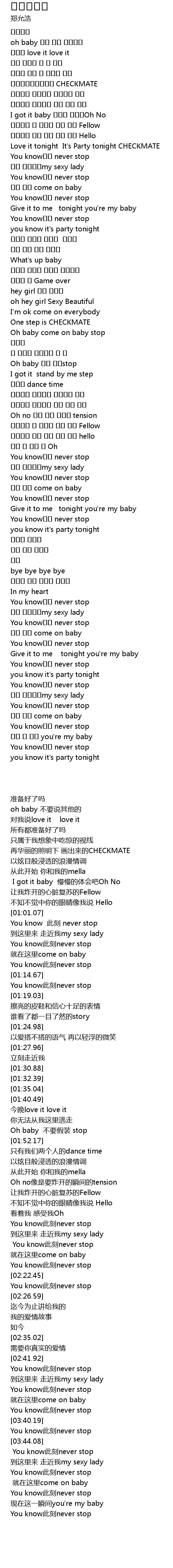 | [01:01.07] | Love it tonight It's Party tonight CHECKMATE |