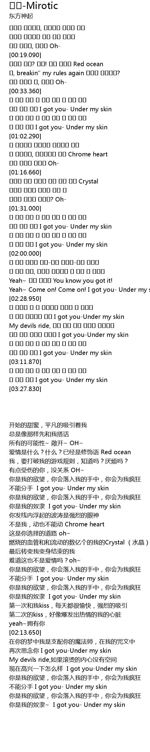 | [03:19.040] | 넌 나의 노예 I got you- Under my skin |
