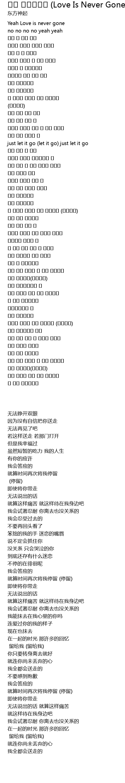 | [00:05.490] | Yeah Love is never gone |