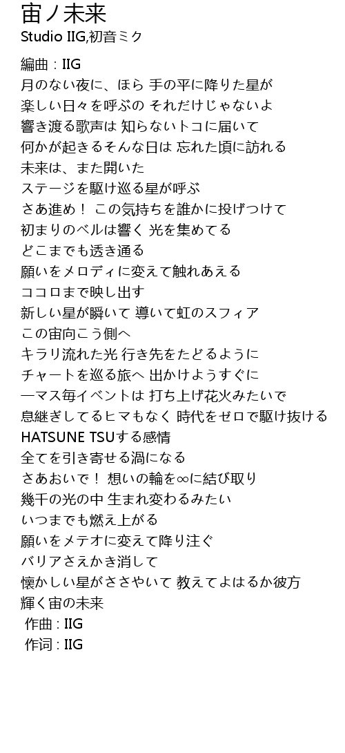| [02:59] | 輝く宙の未来 |