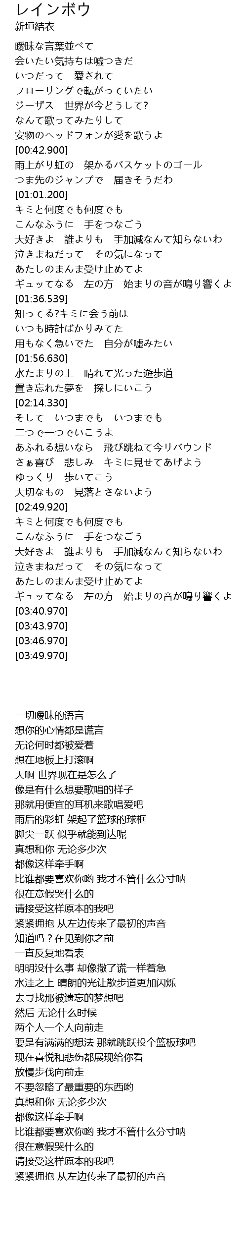 | [00:45.500] | 雨上がり虹の 架かるバスケットのゴール |