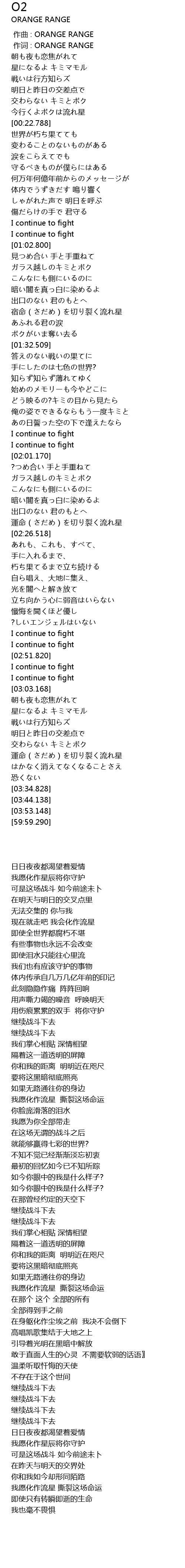 | [00:00.36] | 作词 : ORANGE RANGE |