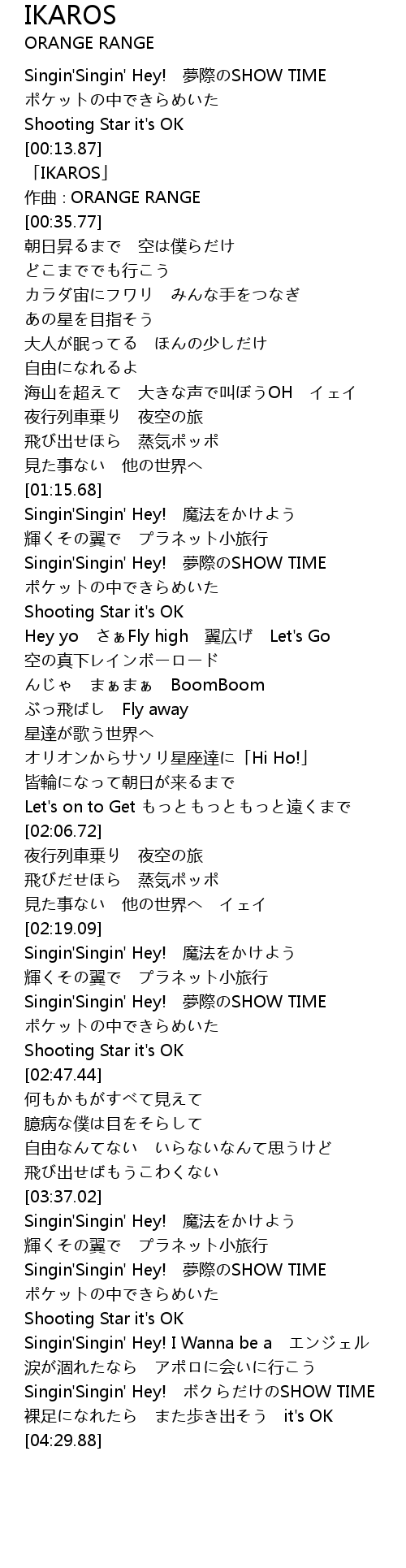 | [03:50.64] | Singin'Singin' Hey! 夢際のSHOW TIME |