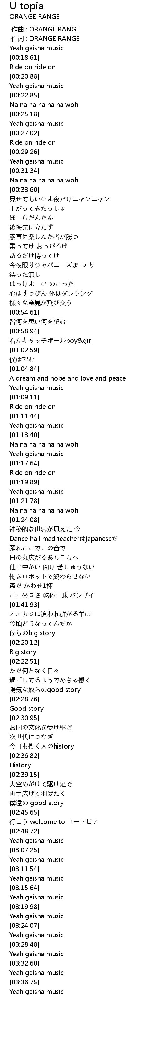 | [00:01.00] | 作词 : ORANGE RANGE |