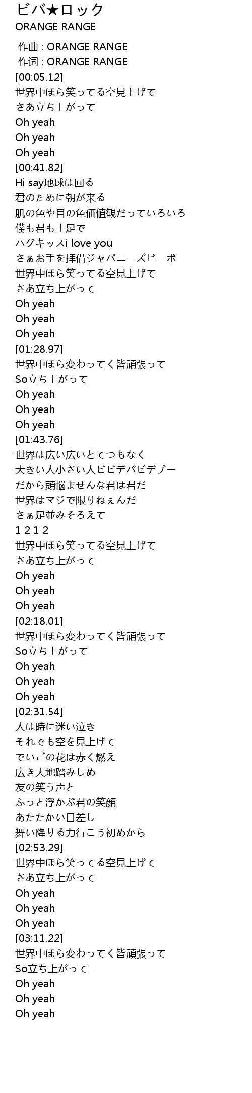 | [00:01.00] | 作词 : ORANGE RANGE |