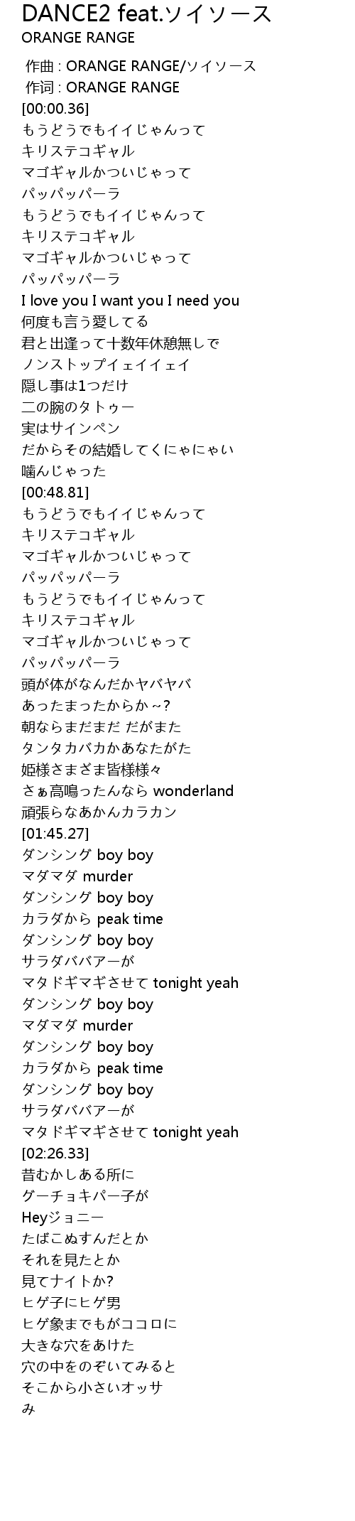 | [02:02.05] | ダンシング boy boy |