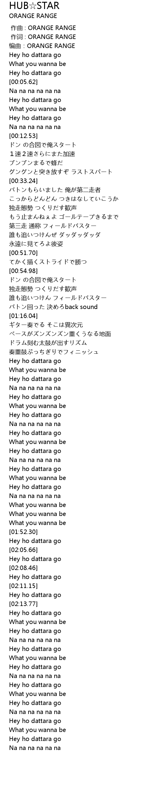 | [00:00.11] | 作词 : ORANGE RANGE |