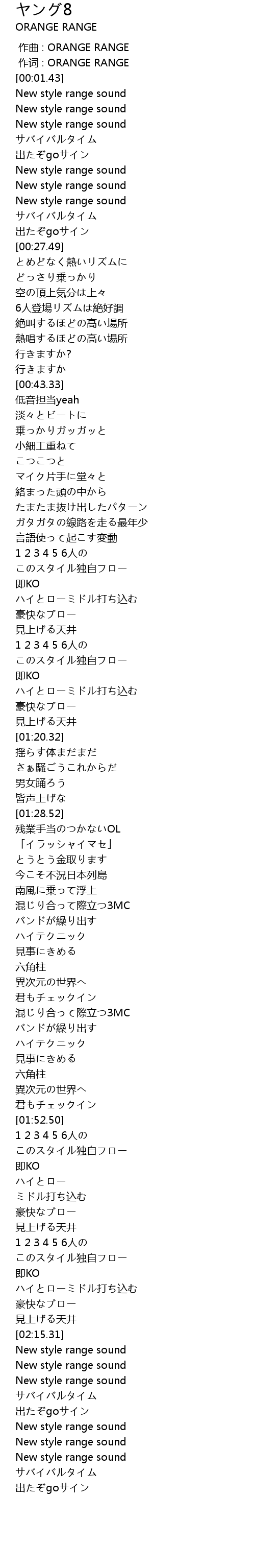 | [00:00.00] | 作曲 : ORANGE RANGE |
