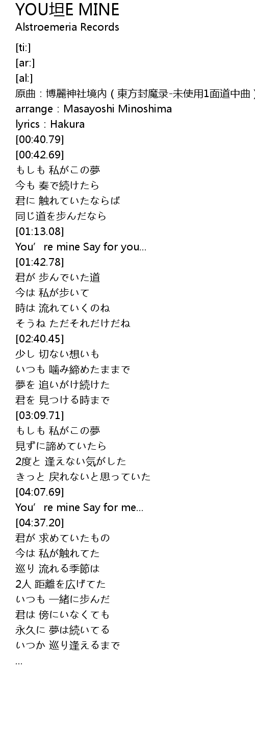 | [00:15.44] | arrange:Masayoshi Minoshima |