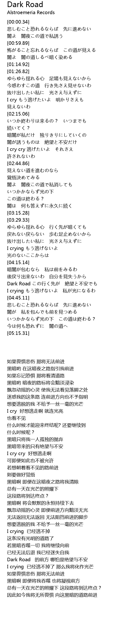 | [00:52.25] | 闇よ 闇夜この道で私誘う |