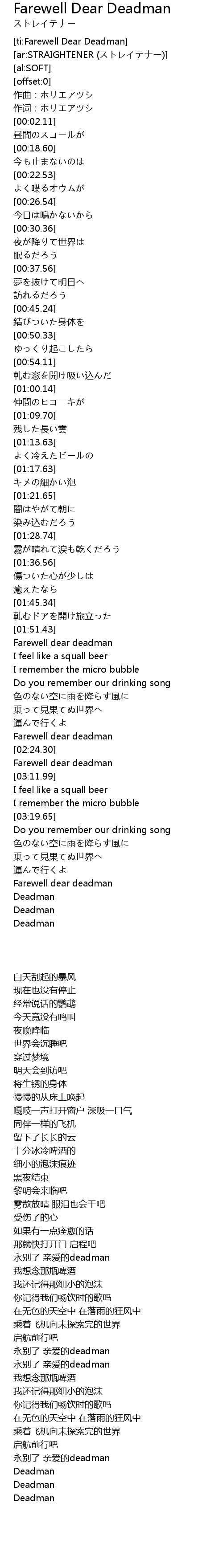 | [01:53.82] | Farewell dear deadman |