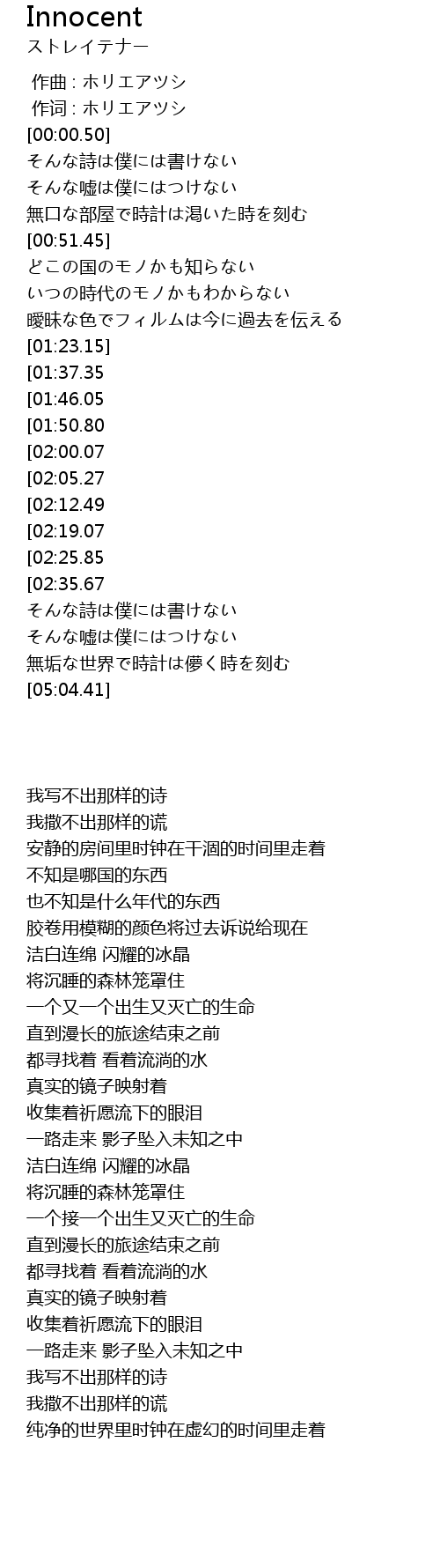 | [04:52.95] | 無垢な世界で時計は儚く時を刻む |