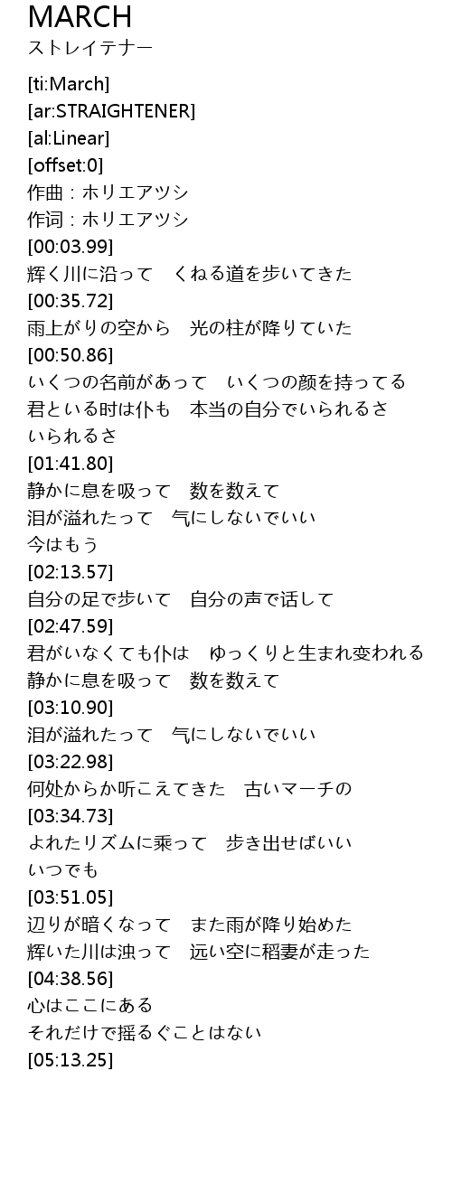 | [03:24.35] | 何处からか听こえてきた 古いマーチの |