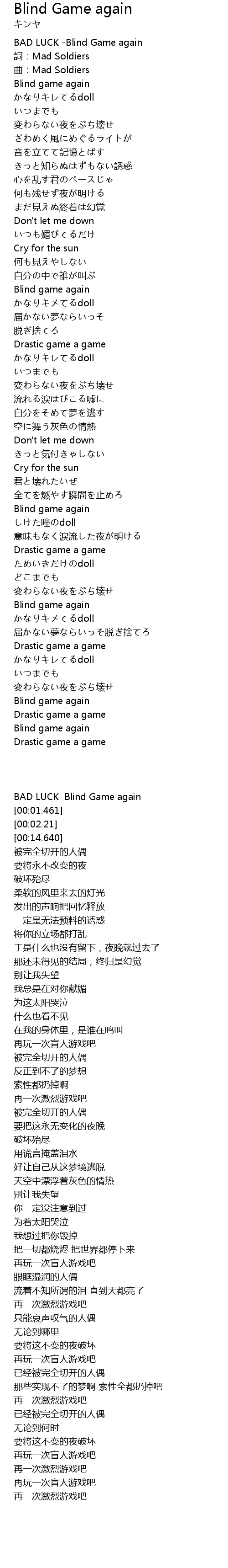 | [00:00.207] | BAD LUCK -Blind Game again |