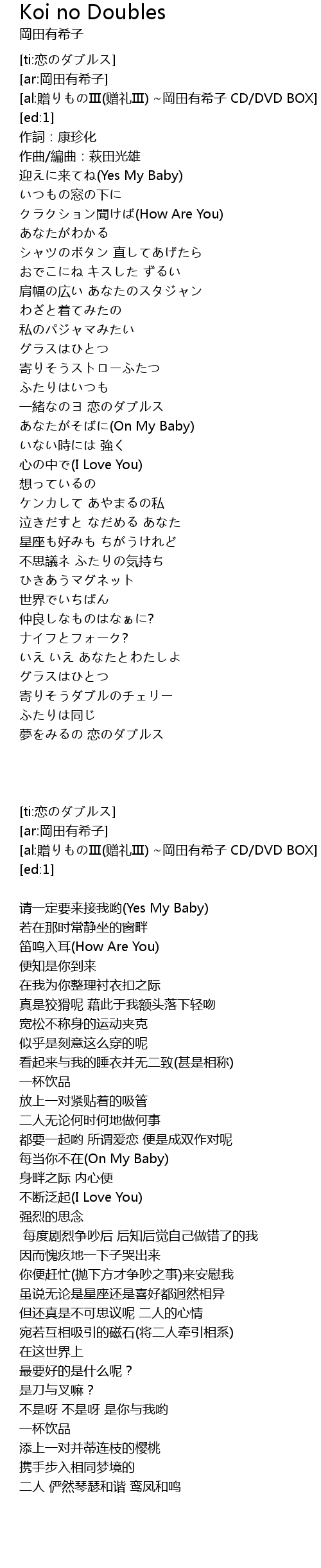 | [02:40.803] | 夢をみるの 恋のダブルス |