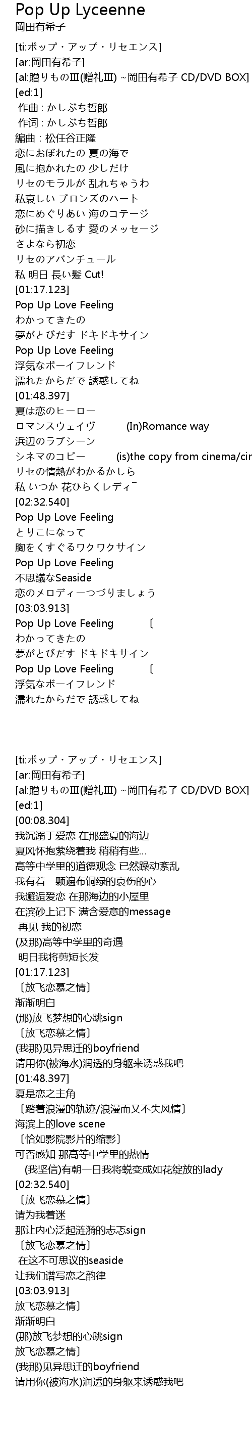 | [03:05.664] | Pop Up Love Feeling |