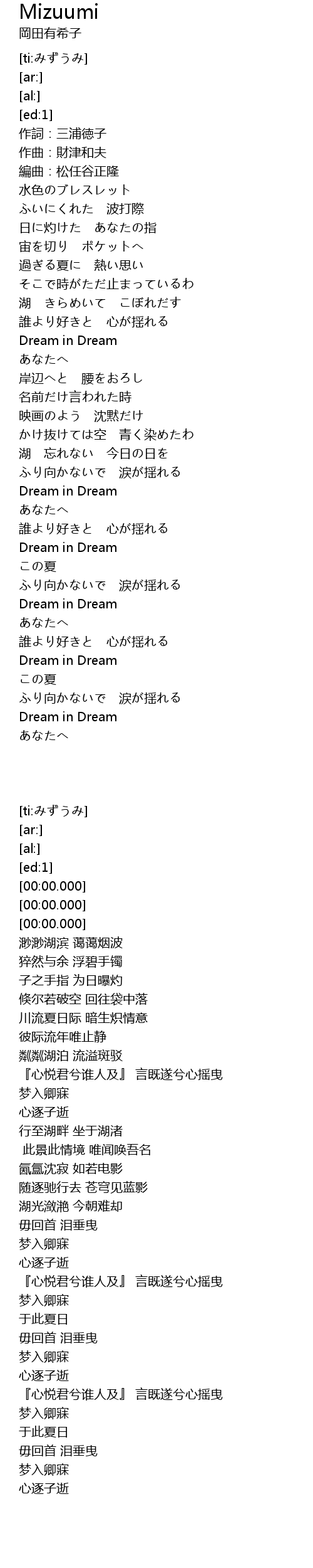 | [03:43.753] | ふり向かないで 涙が揺れる |