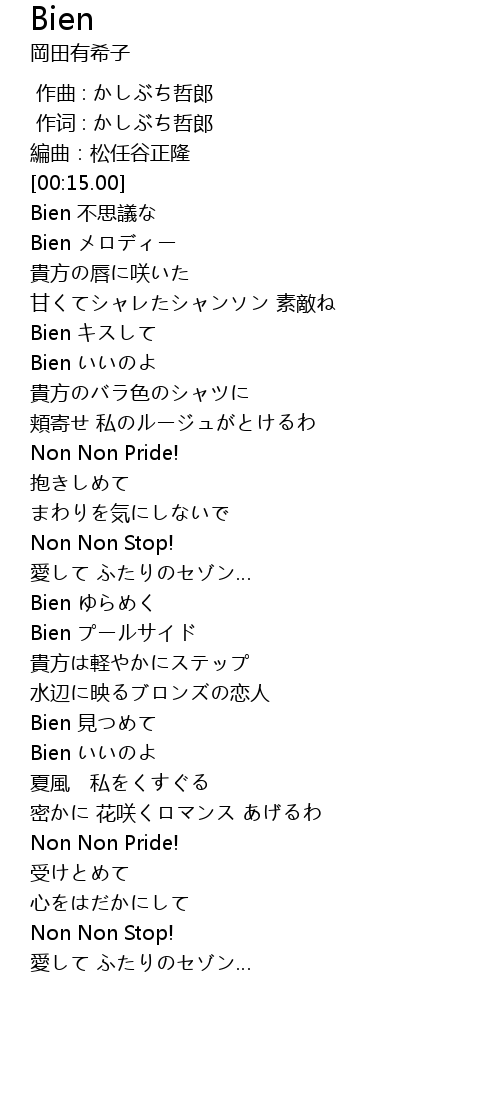 | [02:03.21] | Bien ゆらめく |