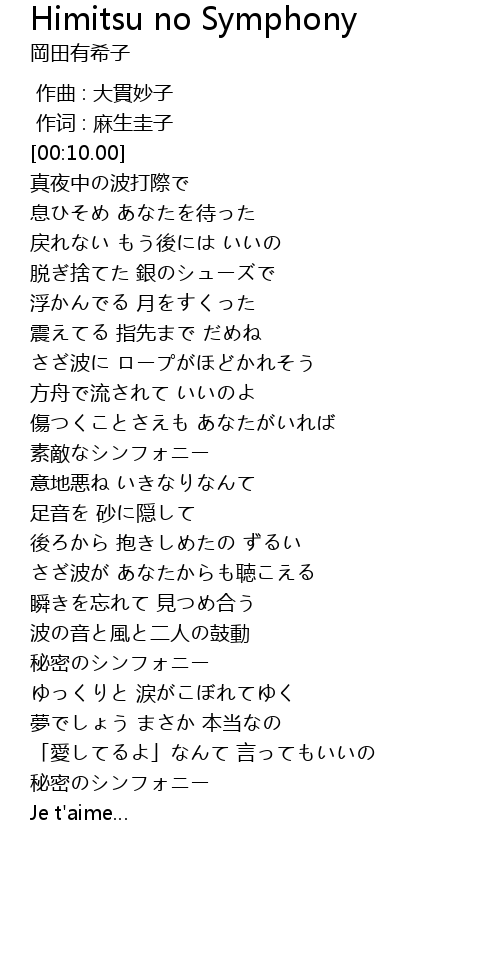 | [02:51.17] | さざ波が あなたからも聴こえる |
