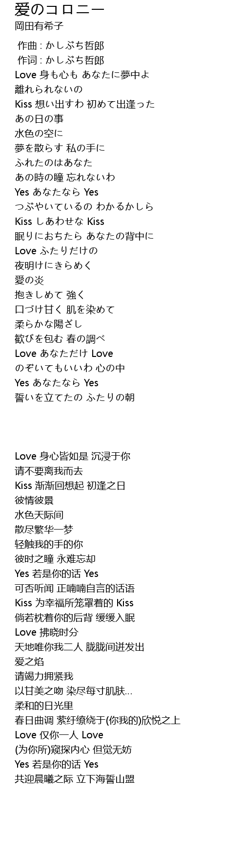 | [00:45.05] | Kiss 想い出すわ 初めて出逢った |