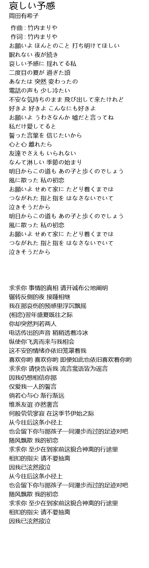哀しい予感に 揺れてる私 |