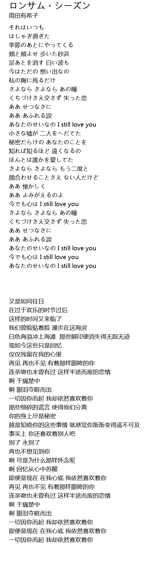 | [02:13.44] | 今でも心は I still love you |