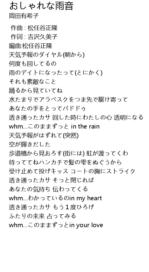 | [00:00.00] | 作曲 : 松任谷正隆 |