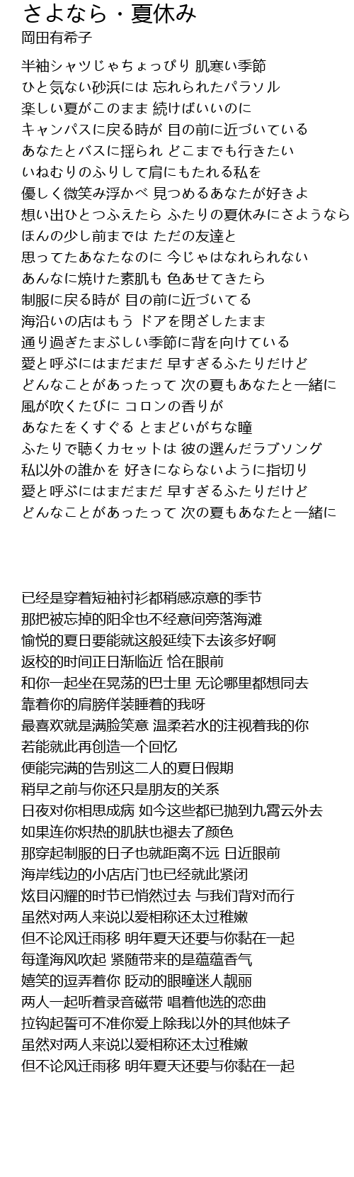 | [00:38.89] | 楽しい夏がこのまま 続けばいいのに |