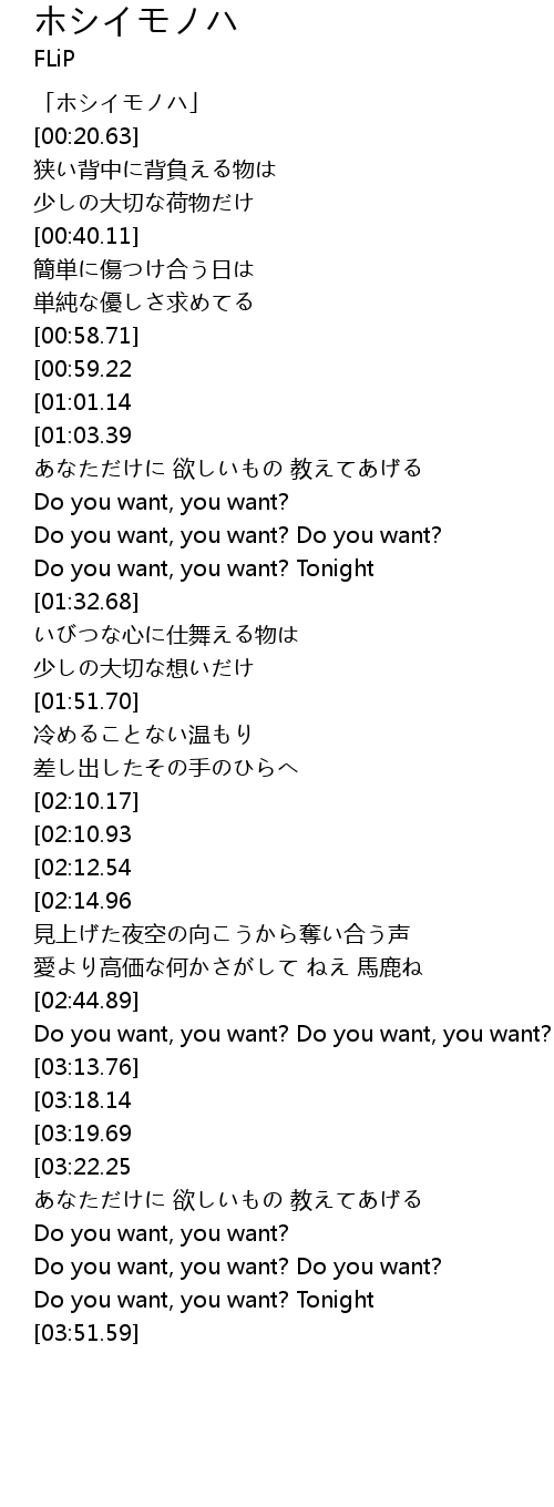 | [02:20.84][02:12.54] | Do you want, you want? Do you want? |