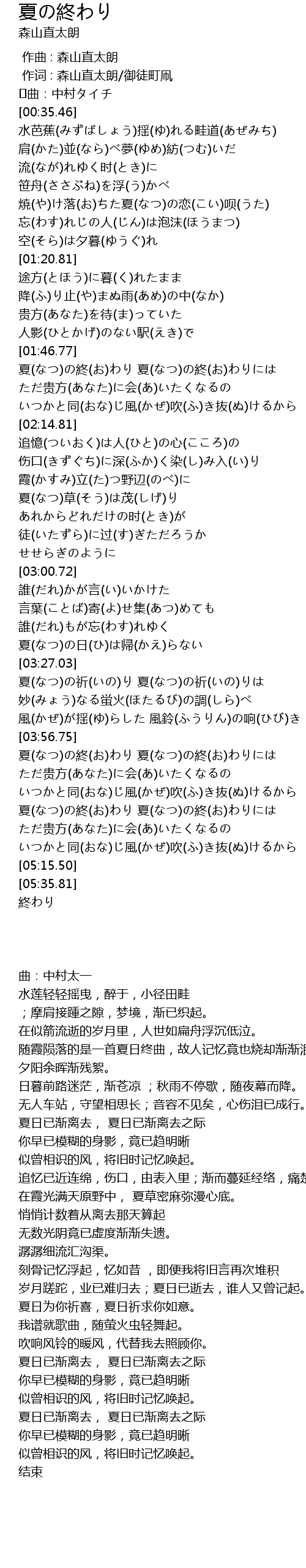 | [04:17.36] | 夏(なつ)の終(お)わり 夏(なつ)の終(お)わりには |