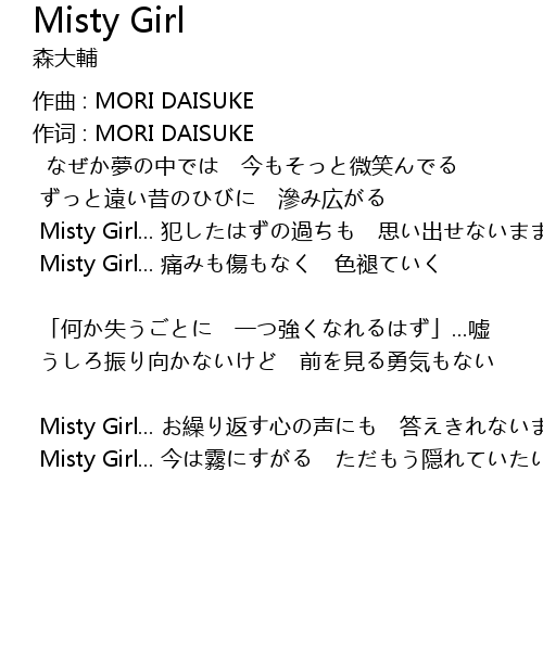 | Misty Girl... 痛みも傷もなく 色褪ていく | |