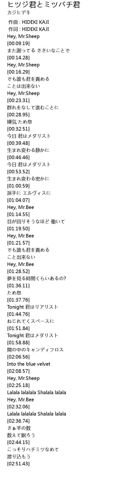 | [02:23.77] | Hey, Mr.Sheep |