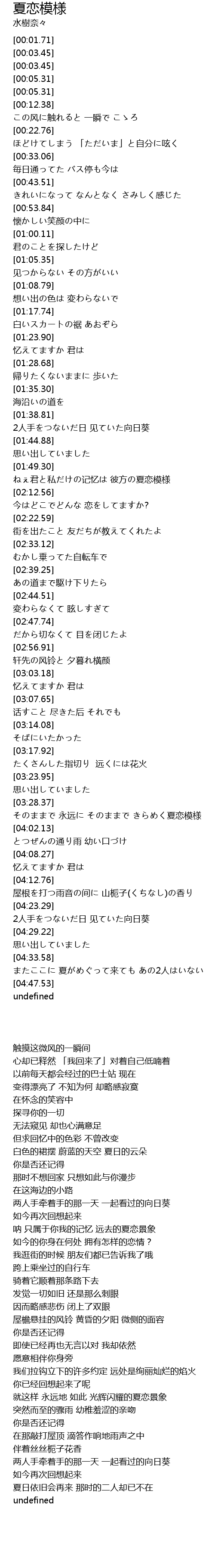 | [03:28.37] | そのままで 永远に そのままで きらめく夏恋模様 |