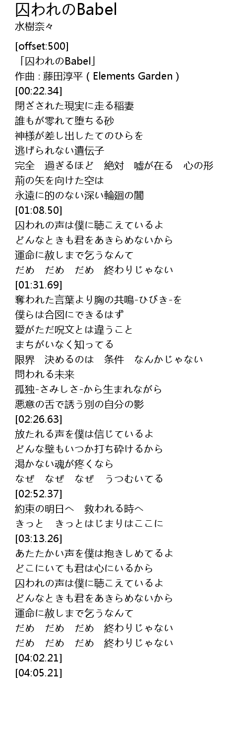 | [03:35.78] | 囚われの声は僕に聴こえているよ |