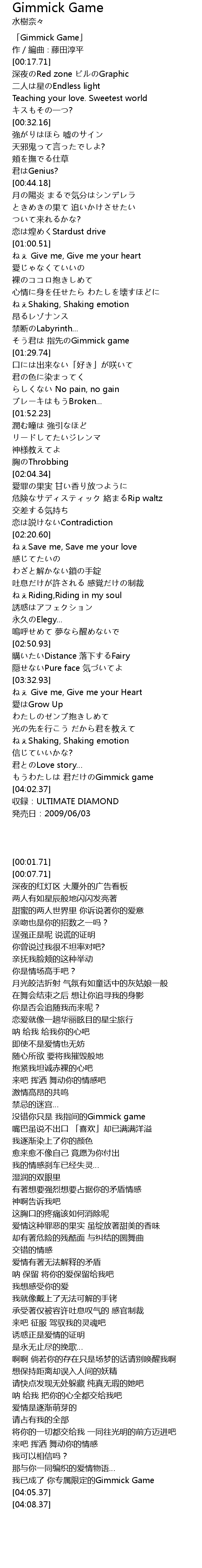 | [00:01.71] | 「Gimmick Game」 |