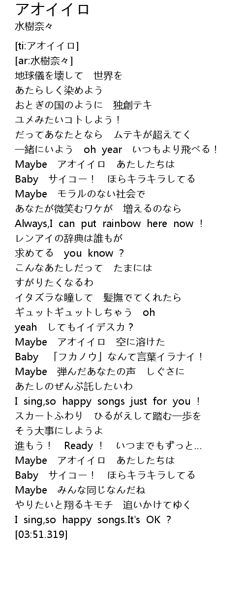 | [03:24.816] | Maybe アオイイロ あたしたちは |