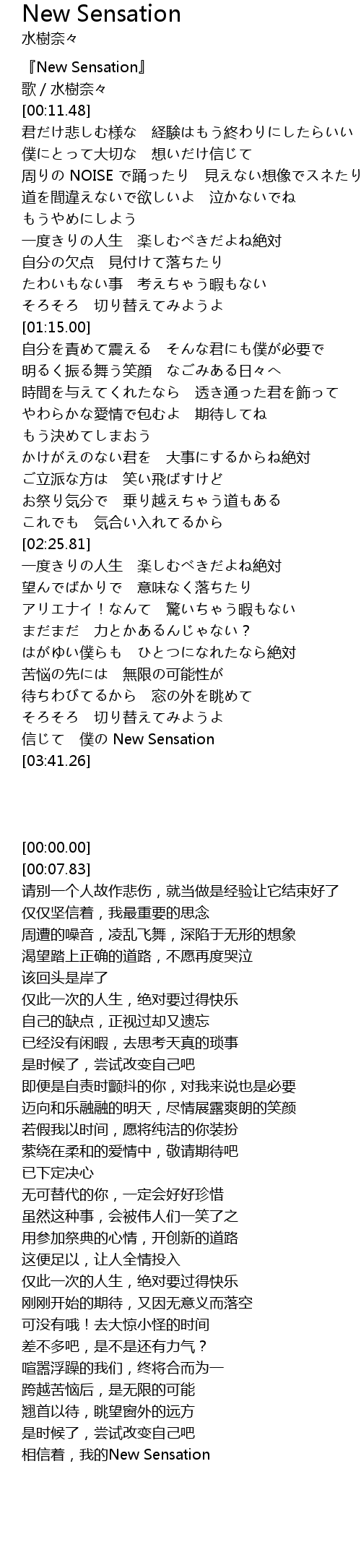 | [00:00.00] | 『New Sensation』 |
