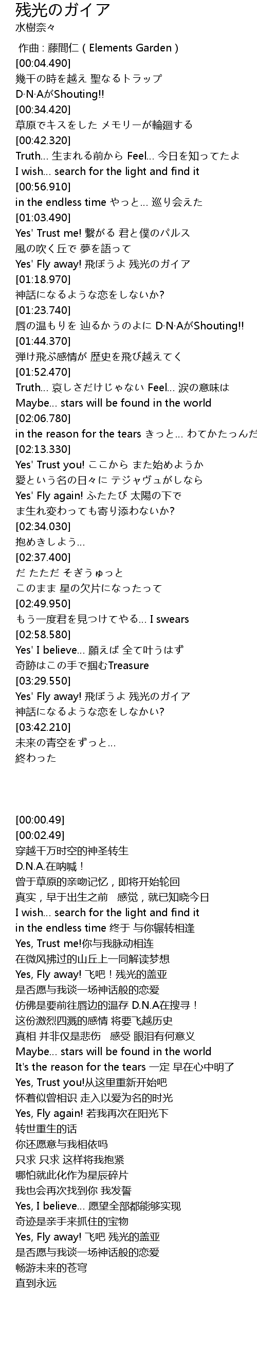 | [03:32.240] | Yes' Fly away! 飛ぼうよ 残光のガイア |