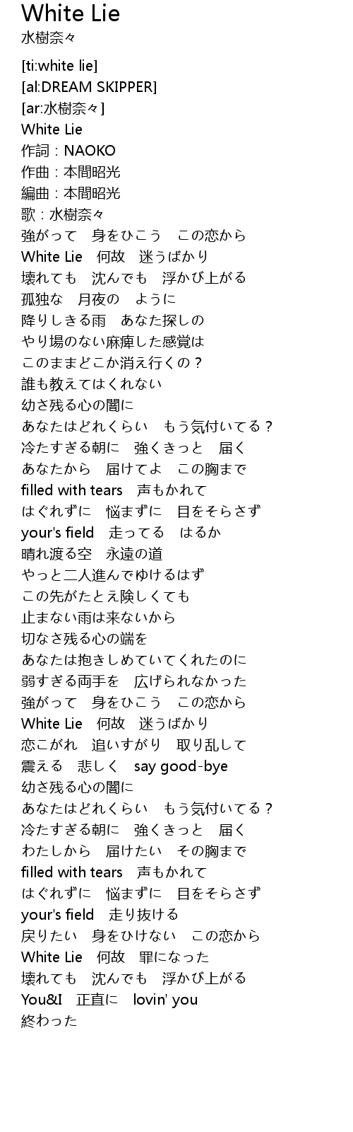 | [03:47.710] | White Lie 何故 罪になった |