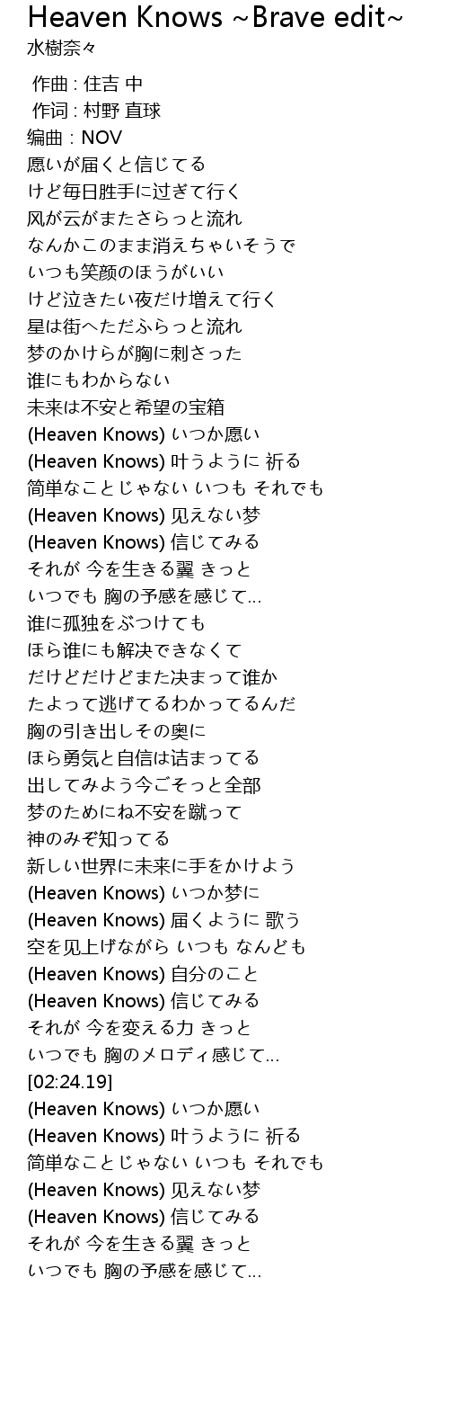 | [02:58.10] | Heaven Knows yuàn |