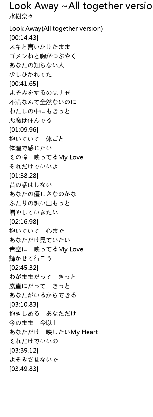 | [03:25.42] | あなただけ 映したいMy Heart |