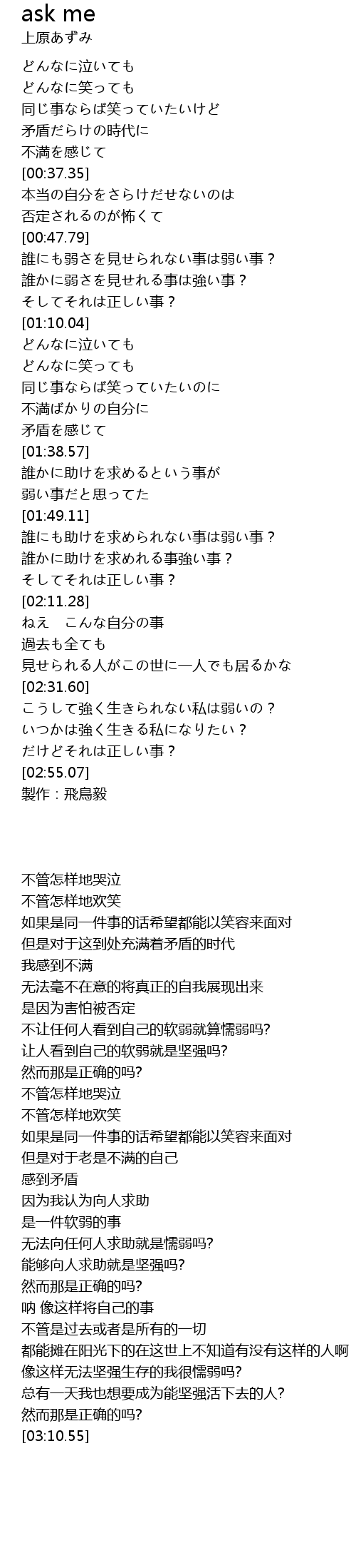 | [01:58.78] | 誰かに助けを求めれる事強い事? |